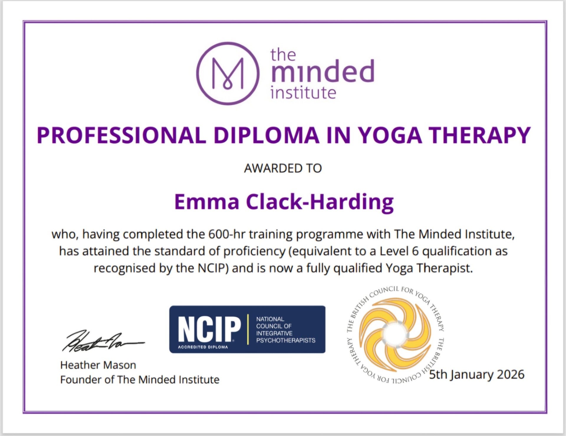 At emma Harding yoga therapy, my commitment to your wellbeing is built upon a robust framework of qualifications and extensive experience. Discover the depth of my training in yoga therapy, mindfulness, and advanced therapeutic approaches, ensuring you receive care that is both compassionate and clinically informed.
